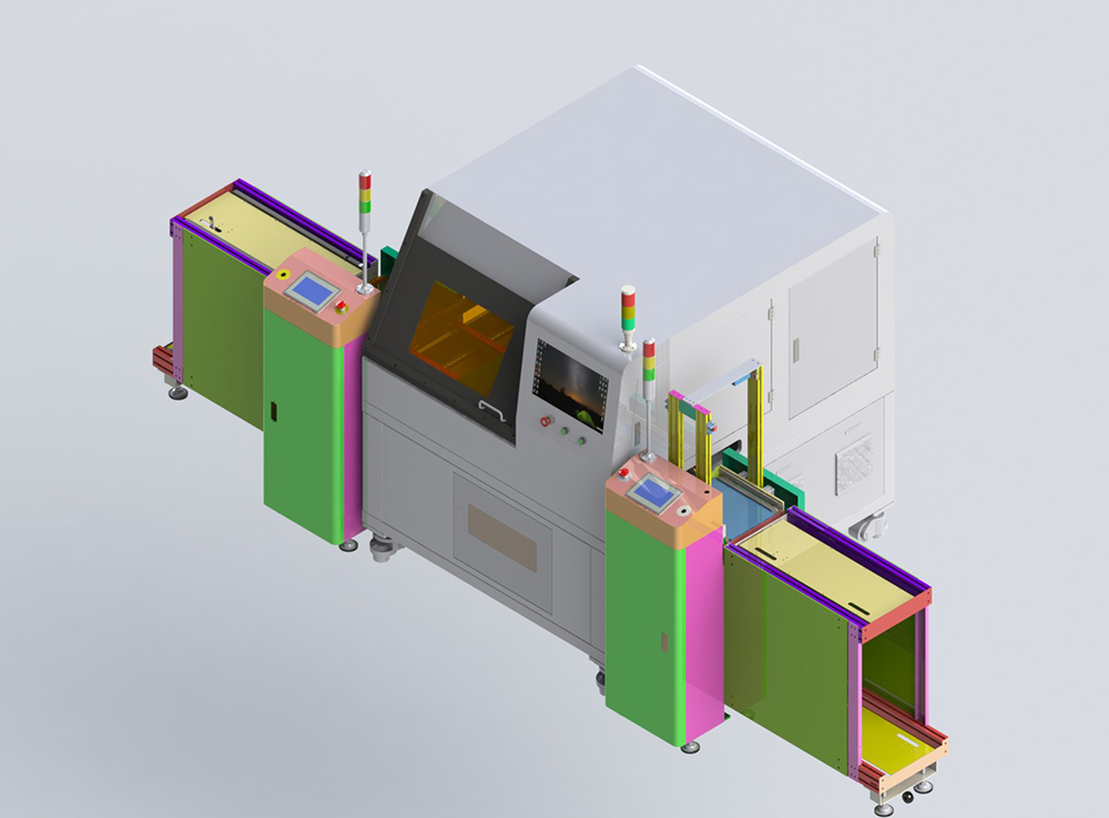 設備采用龍門式結構,整機架構牢固穩(wěn)定;導軌采用同步帶傳輸,確保設備使用壽命和運行精度;配合不同產品,可實現(xiàn)自動調焦以及自動調節(jié)軌道寬度,減少換線時間。